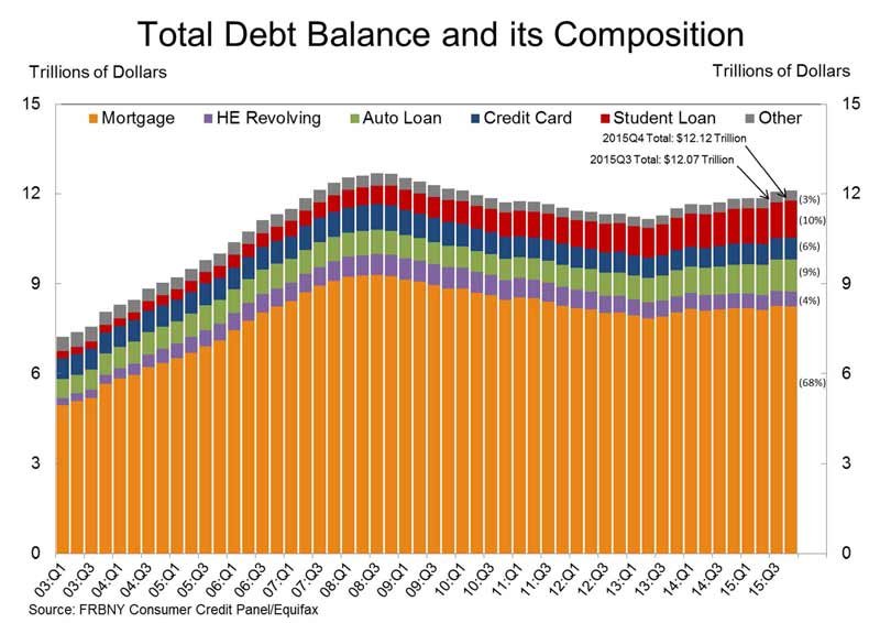 As you can see from the latest Quarterly Report on Household Debt, many Americans are already burdened by high debt balances, particularly student and auto loan debt. The whole deleveraging consumer story is just that…a story.