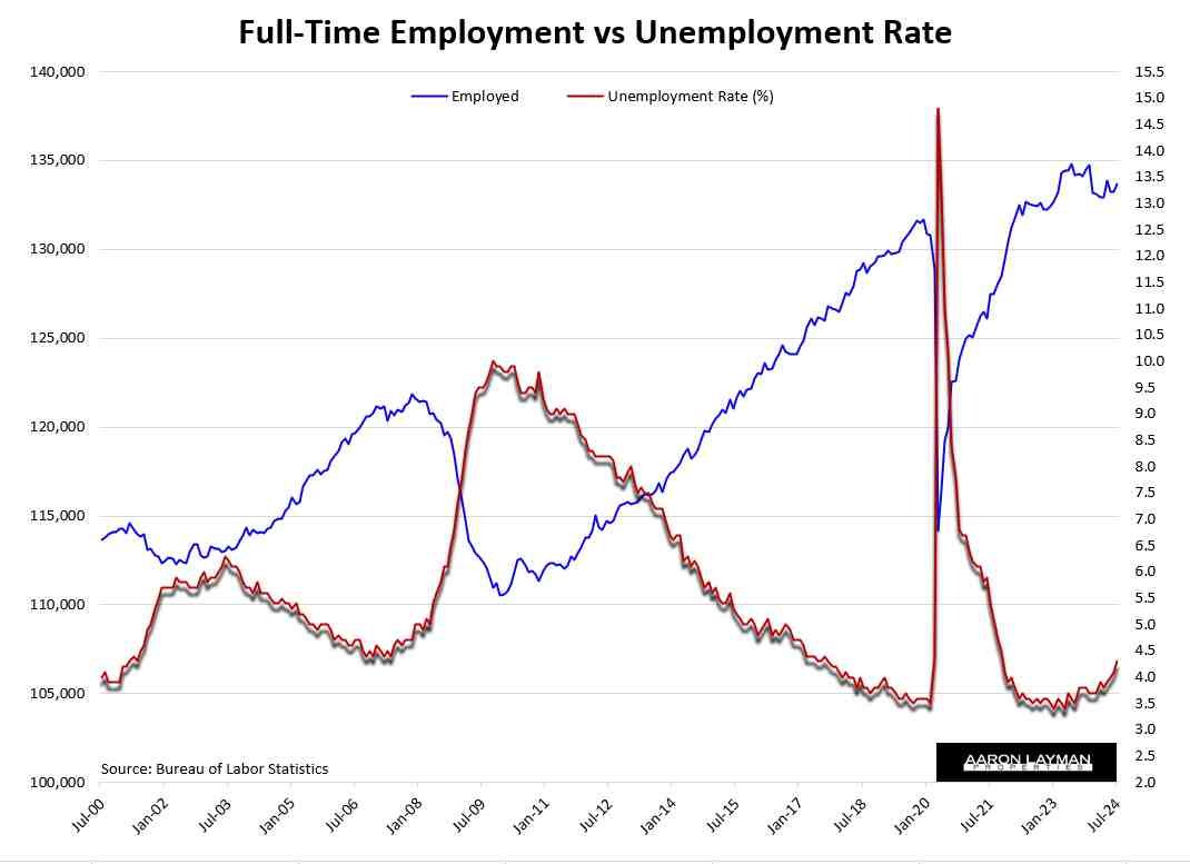 It’s no secret the Bureau of Labor Statistics does some pretty weird stuff to normalize the data. The real question is whether the BLS headline numbers reflect the true health of U.S. labor market. Does the rise of multiple job holders make up for the loss of normal full-time employed Americans? We could soon find the answer to that question. Mike Green posited some thoughts on that subject along with a good discussion of market volatility. It’s well worth a watch if you have the time.